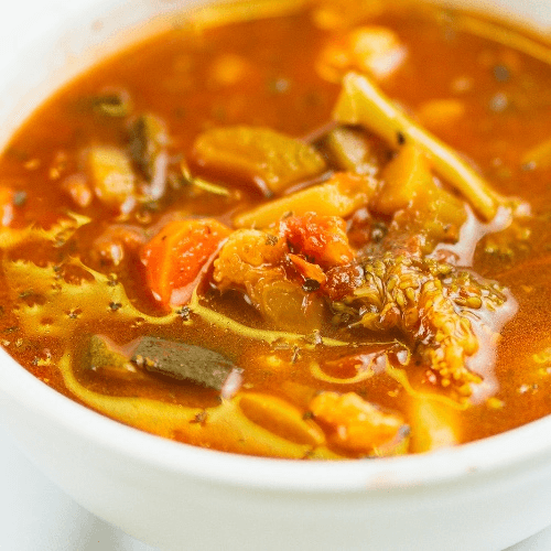 Italian soup with seasonable vegetables, beans, chicken and beef broth