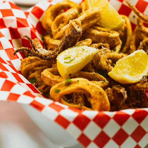 Fried squid served with Pomodoro sauce